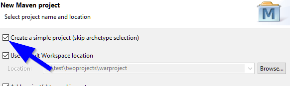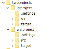 Example: the project “warproject” and “jarproject” are created in the following workspace directory “twoprojects”: