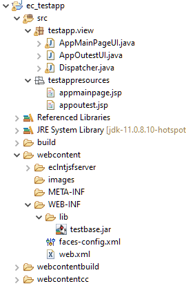 The goal of the .jar-project is, to have all parts of the re-useable page bean definitions inside the corresponding .jar file. This means that all resources (layout definitions, images, ...) need to be part of the sources – and must not be lcated in the webcontent.