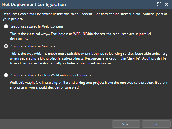 The following text shows how a separations of projects is simplified if using the “source way” of storing web content resources – because in this case all relevant artifacts of a CaptainCasa project are kept inside a JAR file, which can be easily transferred into other projects.