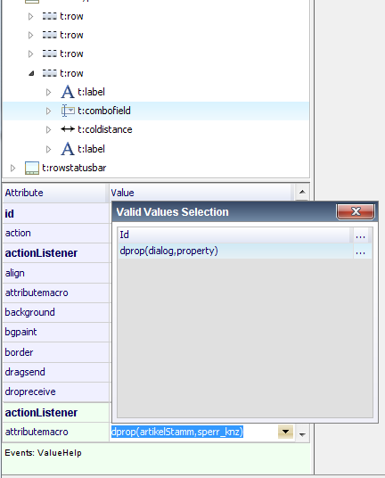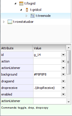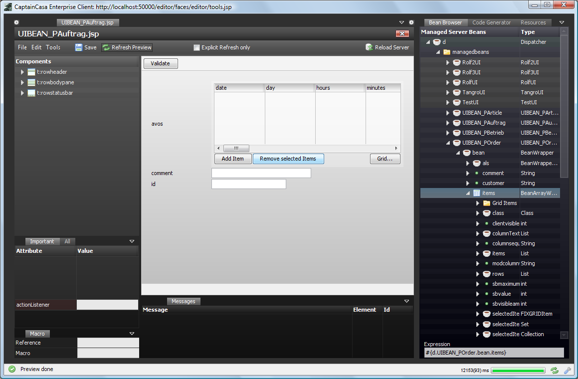 The Bean Browser shows the managed beans of your runtime and allows to drag & drop corresponding expressions into the attributes of components.