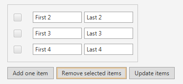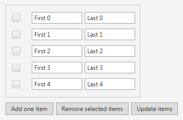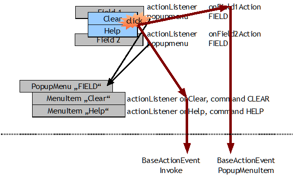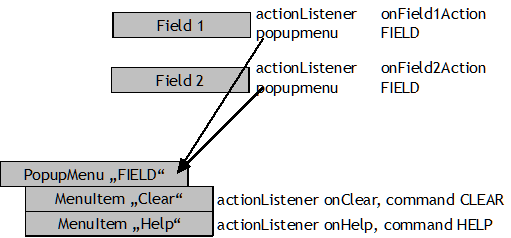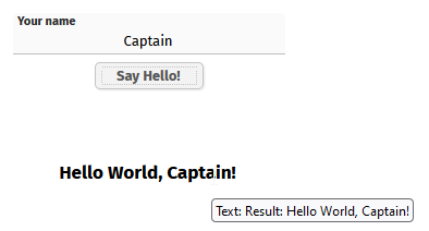 In the result you can pass back properties and action listener methods.