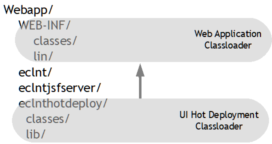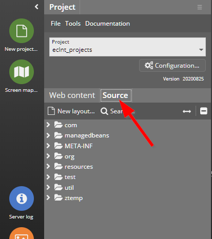There is one directory which is storing the compiled classes: “/webcontentbuild”. When using Eclipse then automatically all Java code below “/src” is compiled into “/webcontentbuild/WEB-INF/classes”: