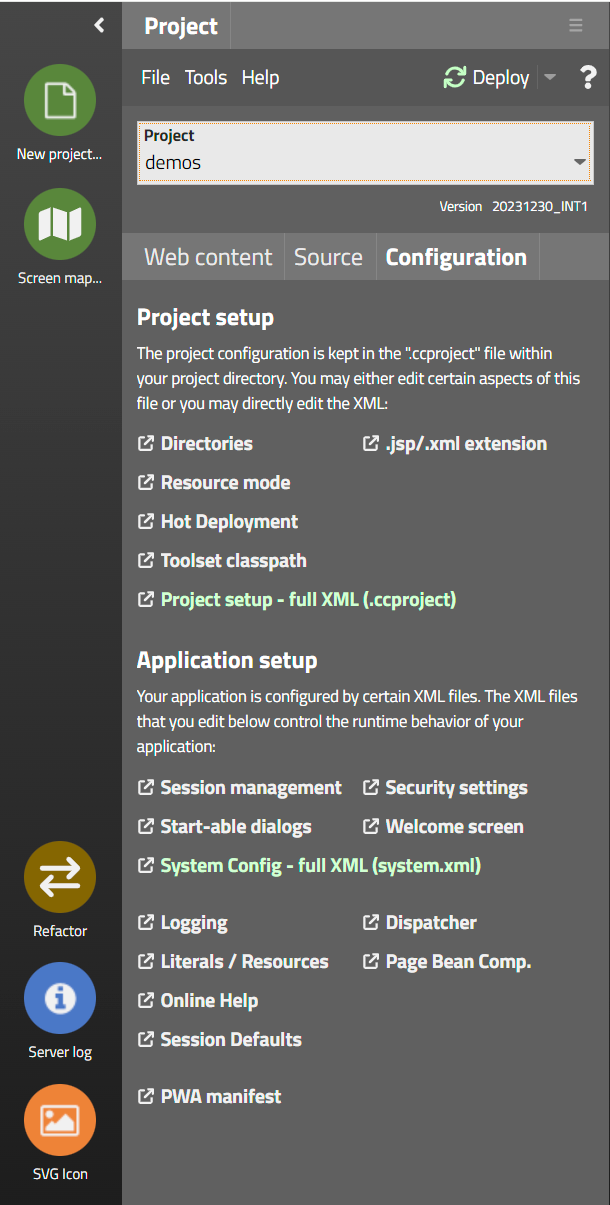 .xml configuration files (e.g. web.xml, faces-config.xml, CaptainCasa configuration files in sub directory eclntjsfserver/config)