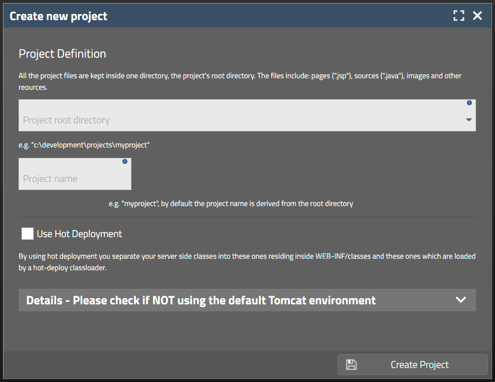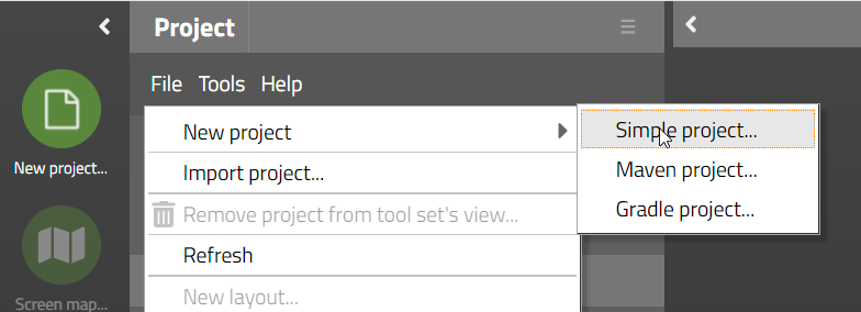 We in general recommend to use the type “Simple project” for your first project in which you want to get to know CaptainCasa's way of creating dialogs and binding them to server-side dialog processing. Knowing how to code in Java is the only prerequisite – so there is no additional complexity added on top. Especially if you are not familiar with Maven/Gradle: do not combine the learning of how to use CaptainCasa Enterprise Client with the learning of how to use Maven/Gradle.