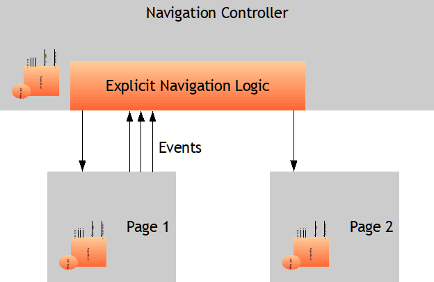 In our case the navigation logic is an explicit one: the logic that rules the page flow is coded. Of course you can now start to build abstractions and introduce navigation concepts according to your need.